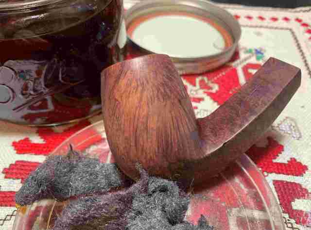 After applying dye to the entire stummel and flaming, the stummel is set aside for several hours to rest allowing the dye to settle.