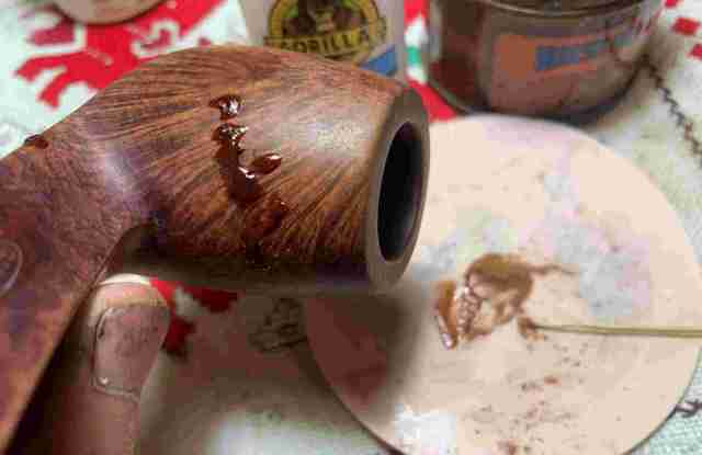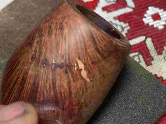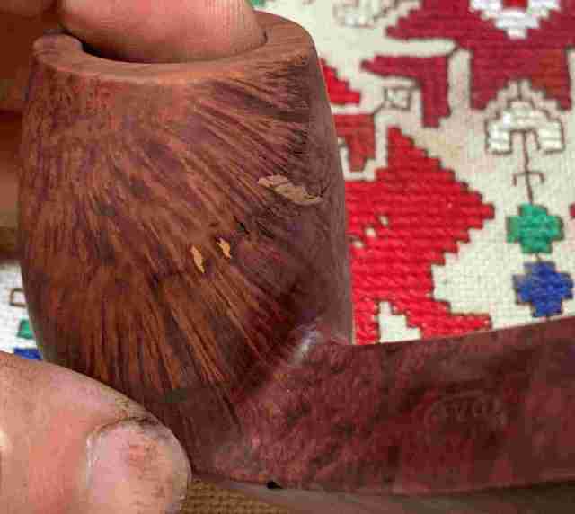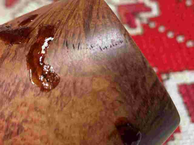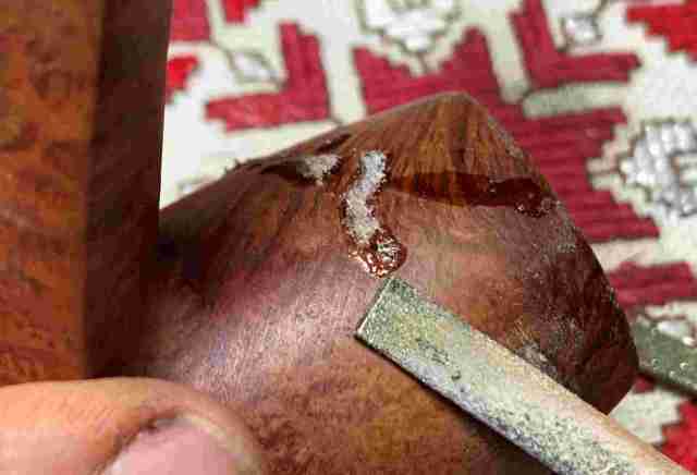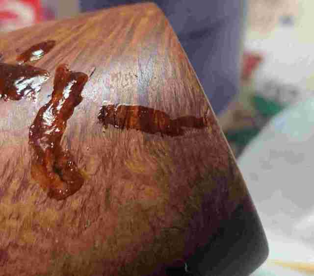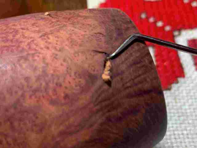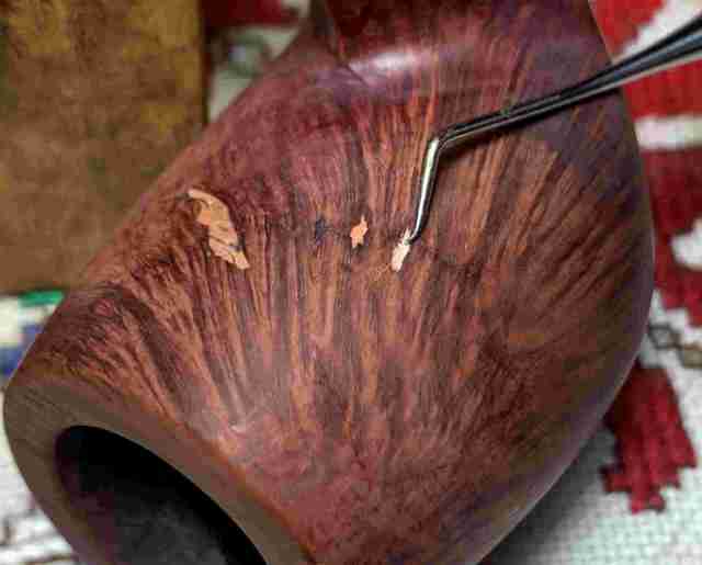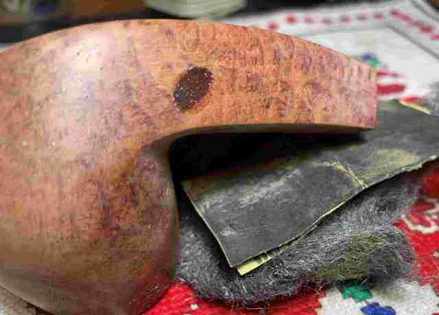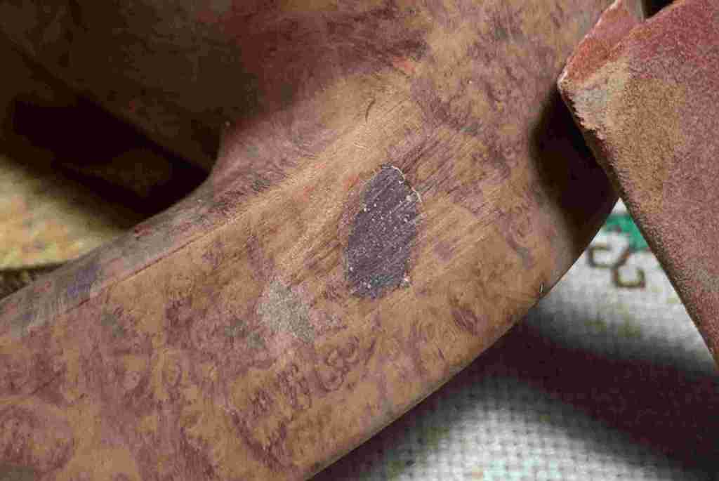 Briar dust putty is also applied to the chip on the edge of the shank.