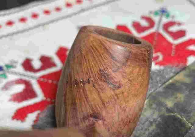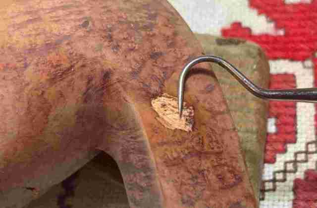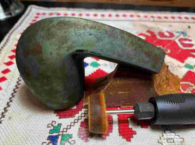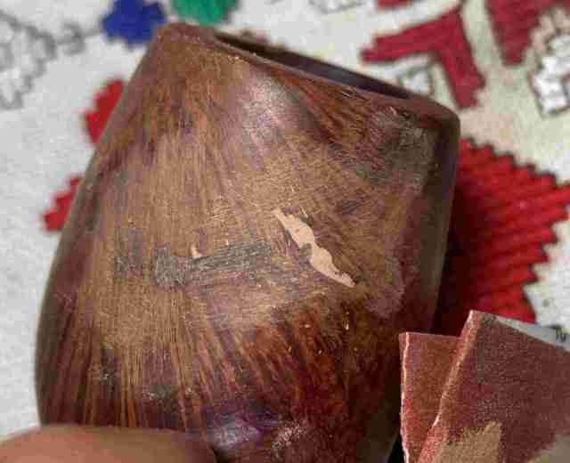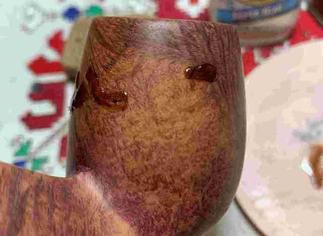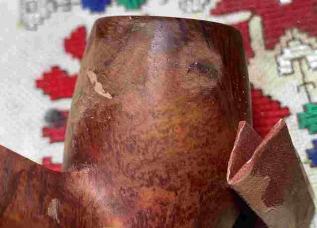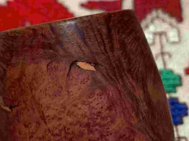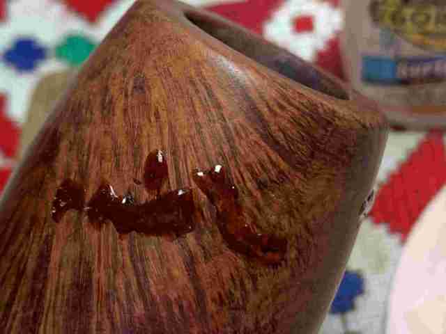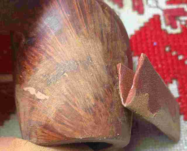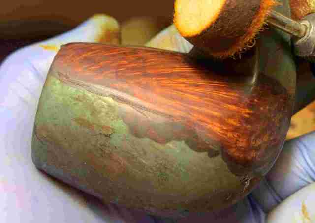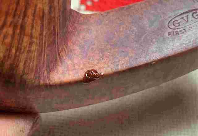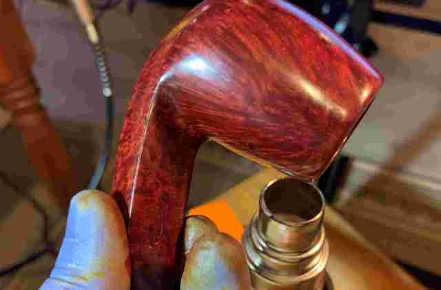 Briar dust putty is also applied to the chip on the edge of the shank.