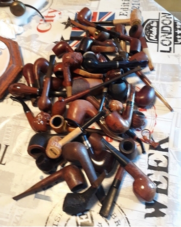 This is an amazing petite now on my worktable. I think it qualifies as a ‘pocket pipe’ because it has obviously been used and loved. I acquired it last year from the French eBay auction block in a Lot of 50 that included some prized pipes which have already passed through my work table and are now serving new stewards. I cannot find the EPC Majestic in this picture of the French Lot of 50, but what has been characteristic of this Lot is that there are several named pipes that I’ve never heard of before. My assumption has been that many of these are French made since the Lot came from France. Many of these pipes also sport very nice horn stems. This is true also of the EPC Majestic.