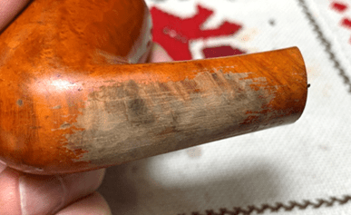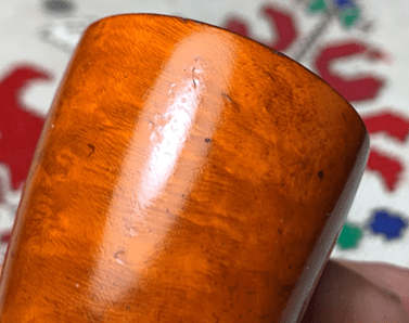 Small dents and scratches also litter the briar surface.  The finish is a very bright tan which is thick and to me, shrouds the natural briar.