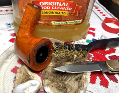 To begin, I first focus on the black acrylic stem.  Using pipe cleaners wetted with isopropyl 99%, it only takes a few to clean the airway.