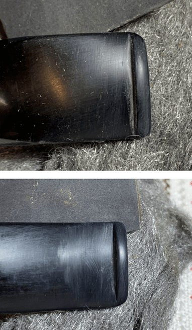 Following the Blue Diamond, a felt cloth is used to wipe/buff the stem and stummel to remove leftover compound dust which can cake onto the surface.  Abrasive compound dust mingling with the wax when it is applied is not desirable.
