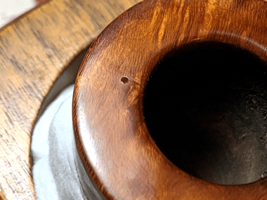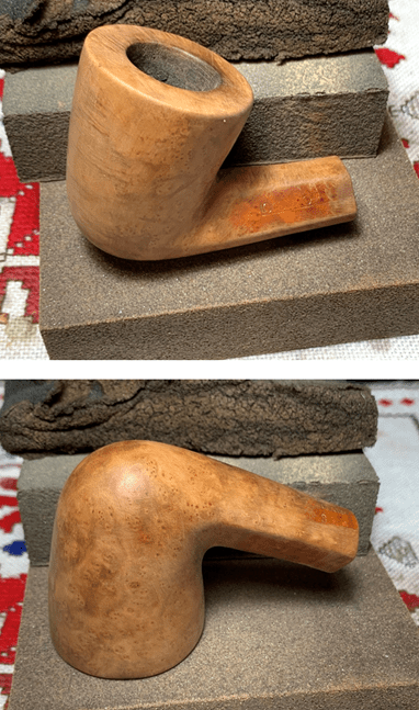 The burn spot at the lighting point also reveals raw briar and residual darkened briar.