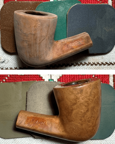 Next, the stummel is further cleaned by using sanding sponges.  Sanding is started with the coarsest sponge, then the middle grade and then finally with light grade sponge.