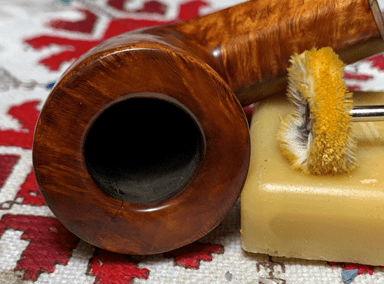 After the cake starter has cured, the stummel enjoys one more round of carnauba wax and then the entire pipe is again given a rigorous hand buffing to raise the shine.