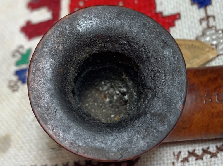 Next, I turn to the daunting project of cleaning the stummel. Yes, daunting, but if 99% of the issues is grime, cleaning will go a long way. We’ll see. I take a fresh picture of the starting point of cleaning the chamber of the heavy carbon buildup. Nasty!