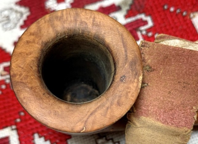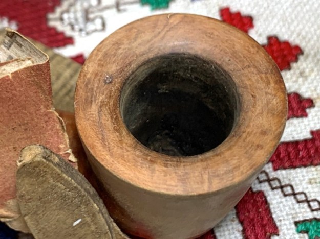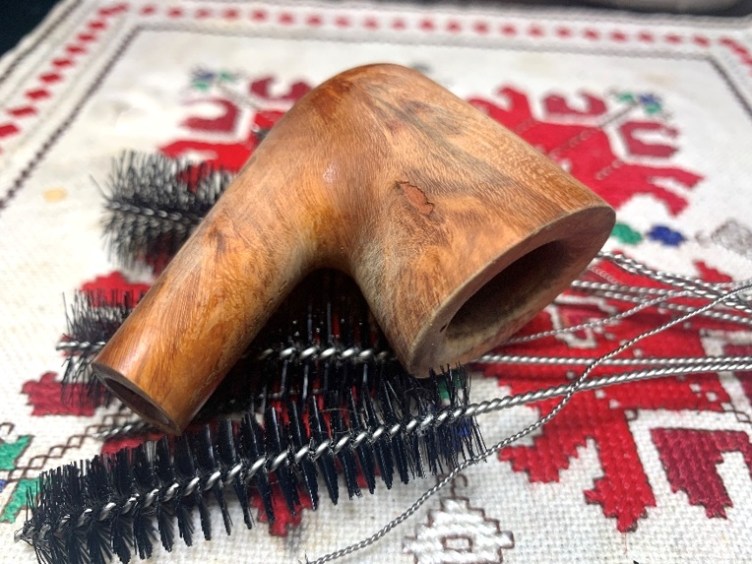 The next pipe on the worktable came to me in 2018 when my son, Josiah, contacted me from an antique shop in St. Louis, where he lived and was studying. He found a box of pipes with a price on it, and he texted me in Bulgaria, where we were then, with a question whether I would be interested in them? It did not take long for my response of ‘Yes!’ and he purchased what I called the St. Louis Lot of 26. The caveat from Josiah was that he would share in the purchase and that I was to choose one pipe in the Lot for myself from him – a gift for the coming Christmas. The picture below was taken after unwrapping the Lot on Christmas and guess which pipe I chose as my Christmas gift? The huge Churchwarden in the center, of course. Many of the other pipes have found new homes with stewards who commissioned them from the For “Pipe Dreamers” ONLY! collection benefitting the Daughters of Bulgaria – helping women and girls who have been trafficked and sexually exploited. Here is the St. Louis Lot of 26: