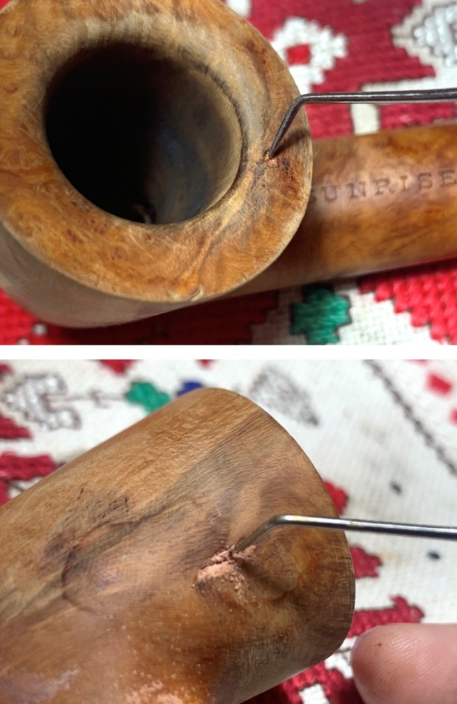 The first step in helping the stummel’s return to a pristine condition is to address the fill on the rim and on the side of the bowl. Using a sharp dental probe, I dig out any remaining fill.