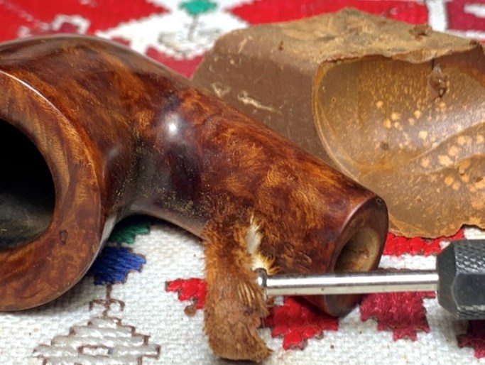 To make sure that the cleaning in complete, a cotton bud and pipe cleaner confirm that this was so. After a whiff to verify, the bowl is as fresh as I know how to make it!