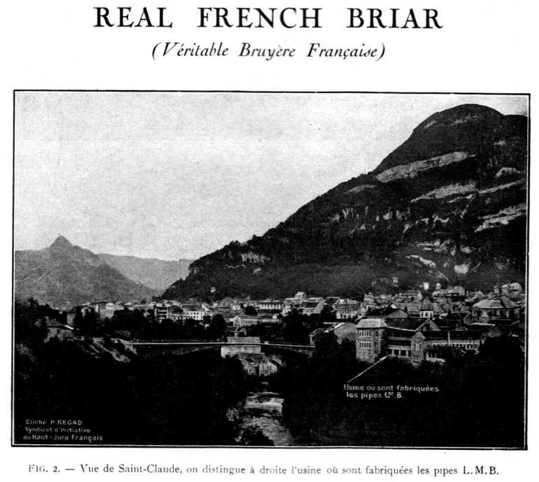 From this communication and from the other ads and catalogs in the Pipedia L.M.B. article, the sense I get is that L.M.B. was more of a pipe retailer and also would service the pipes they sold.  The letterhead on the top right again describes the ‘L.M.B. Patent’ and this is followed by, ‘Patented and Registered All Over the World’.  At this point in my research, one very frustrating part is that I cannot find any clue what ‘L.M.B.’ references?  I’ve combed the ads and catalogs and I can find no reference to the origins of L.M.B. or what it stands for – a moniker, initials of a name, a place? In the 1923 L.M.B. catalog linked in the Pipedia article (See: LINK), clues start coming together until an unexpected break though.  This catalog references where L.M.B. pipes are manufactured – in Saint Claude, the pipe manufacturing capital of the world.  When I first saw this reference, my first inclination was that the Paris based L.M.B. had their pipes manufactured in Saint Claude by another established pipe manufacturer and simply put their L.M.B. stamp on them and shipped them off to Paris and the other retail stores.  This is a common practice even today – pipe retailers and tobacconist putting their names on pipes manufactured elsewhere.  These often are called, ‘Shop Pipes’.  The caption below the picture says: View of Saint Claude we can see on the right the factory where are manufactured the pipes L.M.B.A breakthrough came in an unexpected way.  As often is the case, my wife will come into my workroom (aka: Man Cave) and peak over the computer display to check out progress on my various restoration projects.  When she saw the ‘new’ little pipe on the worktable she asked what it was.  I said I was doing research on a pipe company called, L.M.B., but couldn’t find any information on what L.M.B. stood for or concrete information of its origins as a company, which I was assuming was Paris.  A few minutes later I heard her reading information about L.M.B. from our adjacent family room.  Of course, my response was, ‘Where did you find that!?’  She sent me a link she had found of an L.M.B. reference from the Pipe Smokers Den (See: LINK) from a contributor, Benjamin Meyer,  whom I recognized from another search of L.M.B. pipes that I had done earlier where he was reviewing his favorite tobaccos and referred to his primary pipe, an L.M.B.  He pops up again with my wife’s link where he described critical information about L.M.B. which I had not seen before: