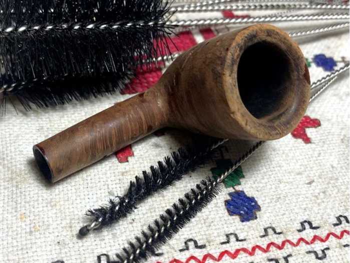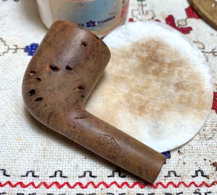 It doesn’t surprise me that this unique, petite French Billiard came to me in a lot of pipes I purchased from a seller in Paris.  The French Lot of 50 was on the French eBay auction block in August of 2018 when my wife and I were still living in Sofia, Bulgaria.  A pipe man friend of mine living in Romania emailed me about this lot as well as about 4 others that the same Parisian seller had on the block.  He chose one and I chose another to bid on.  If I would have known how many treasures I would have found then, I would have bid on other lots as well.  One of the things that got my attention were all the horn stems I could see in the seller’s pictures.  There were other unique shapes that I could see as well. The picture below shows the Lot that I ended up bidding on and acquiring.When the French Lot of 50 arrived and I started unpacking pipe after pipe, for me it was like Christmas in August.  I took my time unwrapping, holding each pipe in my hand looking at the nomenclature and not recognizing many of the names I saw.  As the pipes were processed, I grouped them and took pictures of each.  Many of these pipes have already been commissioned from the ‘For “Pipe Dreamers” ONLY!’ collection and restored and now with new stewards benefitting the Daughters of Bulgaria.  The ‘Aspir’ now on the worktable is in the top right group, second pipe down.  Pipe man Mike heard the whisper of the Aspir when he commissioned it along with a few other pipes.  Over the years, one of the surprising benefits of restoring pipes and interacting with the broader pipe community is that one meets a lot of really great people.  Mike stands out in my experience.  He is the founder and an administrator of a FB pipe group that has been a blessing to me, Brothers by Briar.  When I asked Mike about this he wrote: