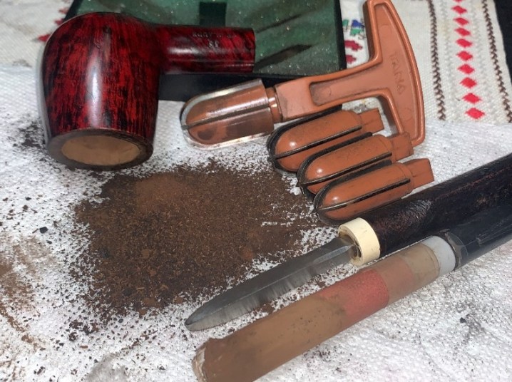 Turning to the stummel, the cleaning process begins by reaming the HUGE (and I can’t get over how much tobacco this chamber will be able to pack 😊) chamber using blade heads from the Pipnet Reaming Kit. A fresh picture is taken to mark the progress.