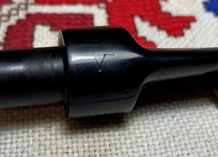 The nomenclature is crisp. On the left shank flank is stamped a diagonally rising fancy cursive, Vuillard [over also in cursive a straight] Concorde. The saddle stem is stamped with a fancy ‘V’ matching the ‘V’ of the Vuillard shank stamping. The right side of the shank is stamped ‘3S’ [over] ST CLAUDE, the birthplace of briar pipe production and the center of pipe making in France and arguably of all Europe.