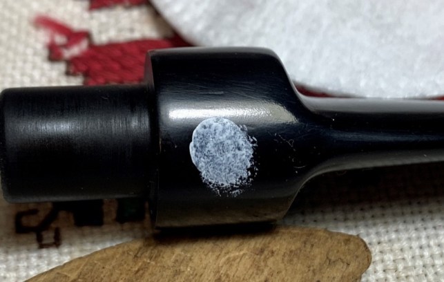 Continuing with the sanding, the stem is wet sanded with micromesh pads 1500 to 2400. Following this, the stem is dry sanded with pads 3200 to 4000 and 6000 to 12000. Between each set of 3 pads, Obsidian Oil is applied to condition the stem and to guard against oxidation. Wow! The stem has made quite a recovery.