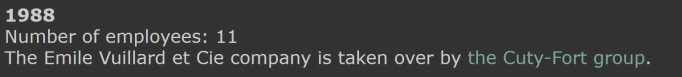 In 1987 Vuillard merged with several other French manufactures. Chacom, Lacroix, Jeantet and Ropp all joined the company in merging with the Cuty Fort Group, under the direction of Yves Grenard and Dominique Jeantet. Today the company operates under the Chacom name, but in deference to Vuillard’s history, the name remains on the original series.