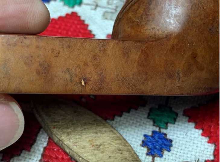 The pit is patched with regular CA glue and then sprinkled with briar dust to help blend the patch.