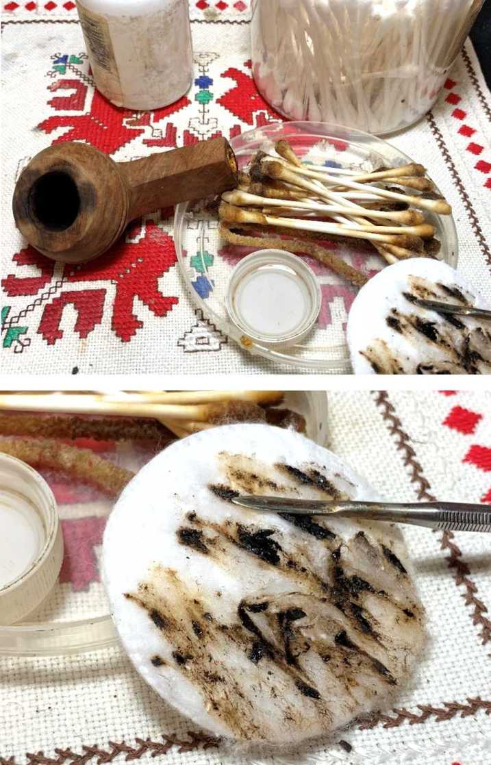 To make sure all is clean, several cotton buds and pipe cleaners follow moistened with isopropyl 99% alcohol. The buds start emerging lighter and things are good to go. This soak not only does the finishing touches on the cleaning process, but also refreshes the briar for a new steward.