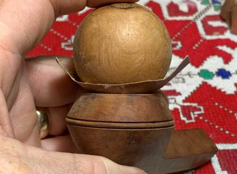 The stem has a metal tenon which is seated in a cork lined mortise. There is some cracking in the cork and after cleaning it, the cork will receive a conditioning with petroleum jelly.
