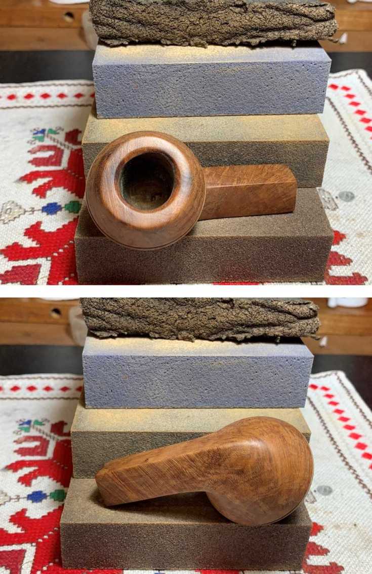 After rotating several times on the 600 paper, the rim is much improved, but some darkened briar lingers.