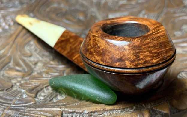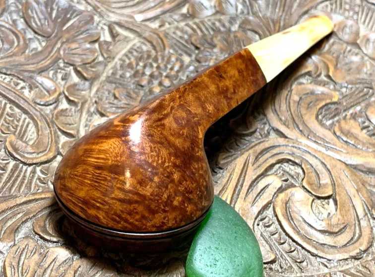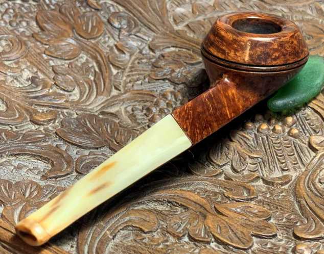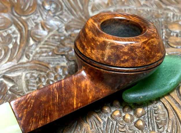 I’m very pleased with the way this probable, French made Unbranded Horn Stem Bulldog turned out. The char staining was daunting, but the application of dye did the trick. This classic straight Bulldog has very active and eye-catching grain with lateral patterns along with Bird’s Eye. The horn stem shows off the hues and lines which give it a homey, sit-back and relax yourself feel. Mike commissioned this Bulldog and as the commissioner will have the first opportunity to claim him from The Pipe Steward Store benefitting the Daughters of Bulgaria – helping women and girls who have been trafficked and sexually exploited. Thanks for joining me!