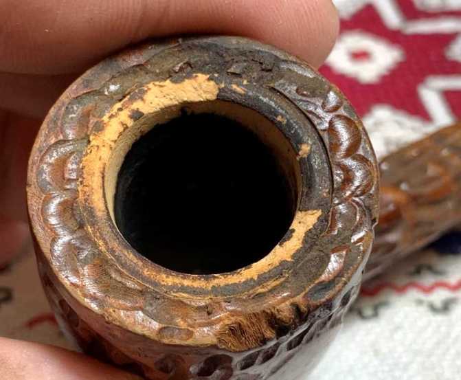In the picture below, the chamber is darkened, but this is not a problem. After running my finger over the Meerschaum, it is smooth. A visual inspection doesn’t uncover any problems. The only issue I see is the chipping on the rim.