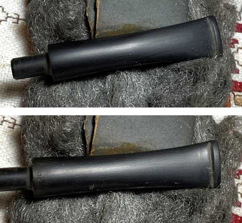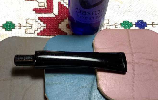 To condition the vulcanite, Paraffin oil is used. The mineral oil is thoroughly applied to the stem and the stem is set aside to absorb the oil.