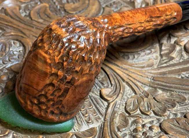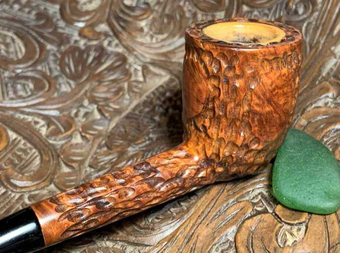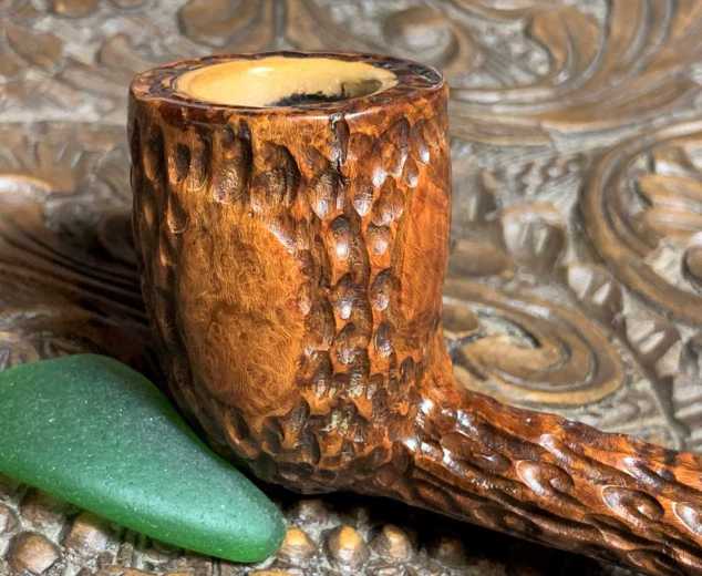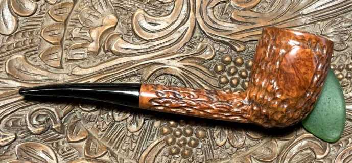 This unbranded Rusticated Meerschaum Lined Billiard of Italy came out great. The scalloped rustication in contrast with the smooth briar ‘finger pads’ is striking. The concentrated grain displayed in these pads is nice. Discovering the Meerschaum lining was a surprise, but a welcomed one. The Meerschaum contrasting with the rusticated rim is another nice touch. The overall lines of the pipe running down the elongated shank then transitioning into a classy slightly tapered stem is eye pleasing. This pipe promises to offer a new steward great fellowship for years to come. Mark commissioned this pipe and as the commissioner will have the first opportunity to claim him from the Pipe Steward Store benefiting the Daughters of Bulgaria – helping women and girls who have been trafficked and sexually exploited.