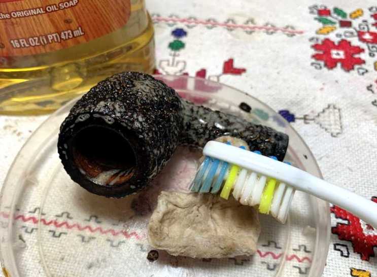 Moving next to cleaning the external Meerschaum surface, a couple pictures are taken to mark the starting point.