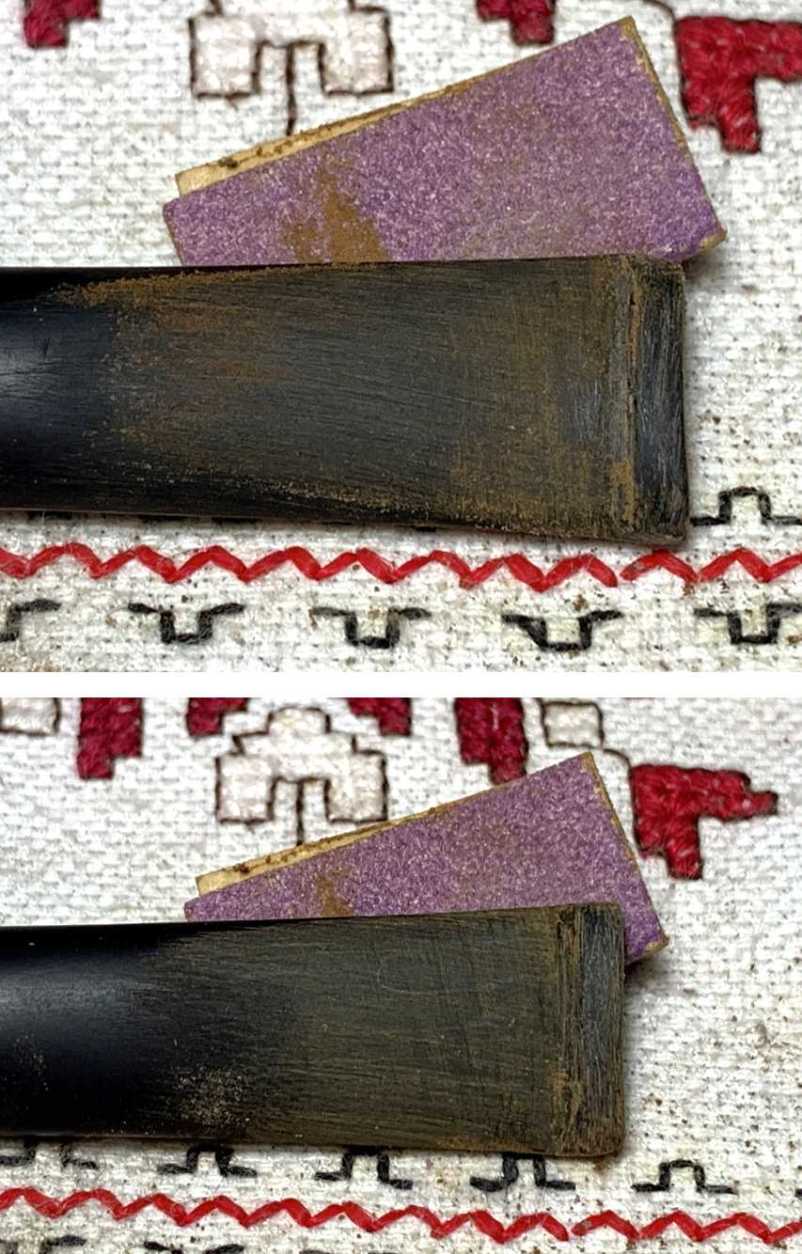 The sanding is expanded next to the entire stem with the 220 grade paper. The sanding is to remove scratches and any residual oxidation.