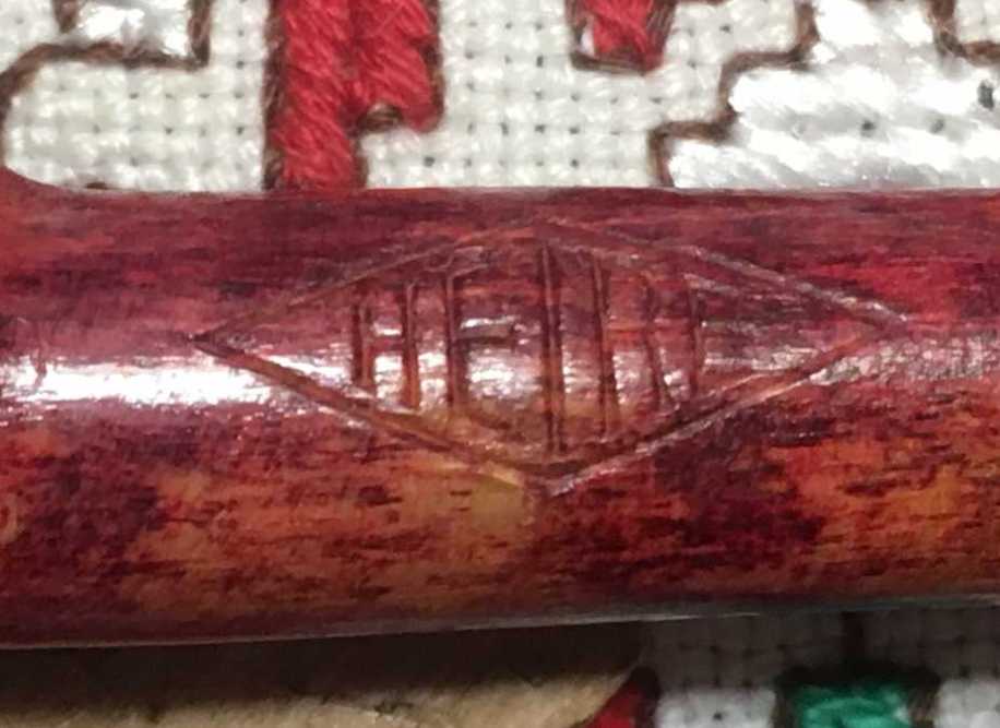 The only marking on the pipe is a stamping on the left side of the shank. HETRE is stamped inside a quadrilateral polygon.