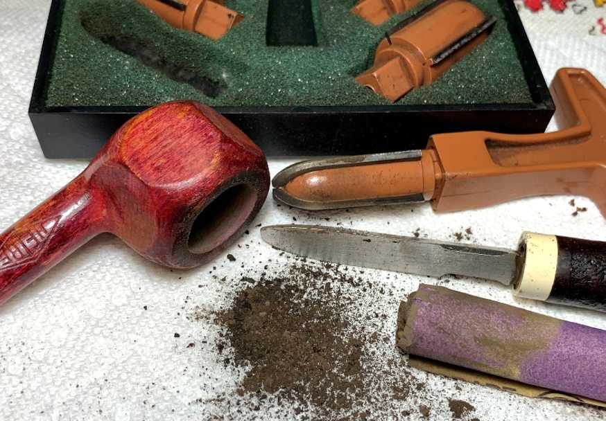 Only the smallest of the Pipnet Reaming Kit’s blade heads is used. This is followed by scraping the chamber with the Savinelli Fitsall Tool. Finally, the chamber is sanded with 220 grade paper wrapped around a Sharpie Pen.