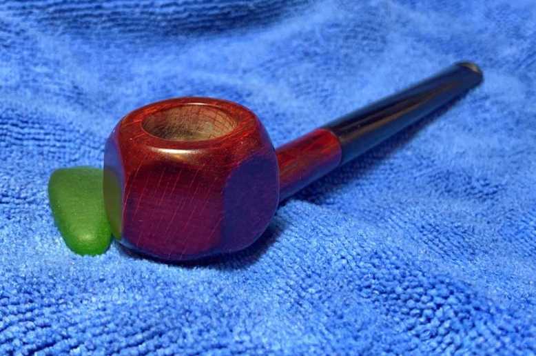 The newly dyed stummel has rested for several hours. The next step is to remove excess dye by wiping the stummel with a cotton pad moistened with isopropyl 99% alcohol. This also serves to blend the new dye.