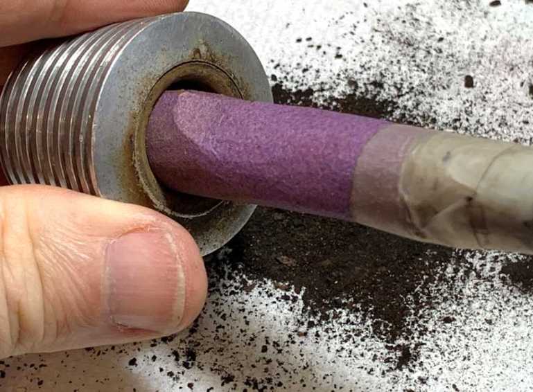 Next, the chamber is sanded using 220 paper wrapped around a Sharpie Pen.