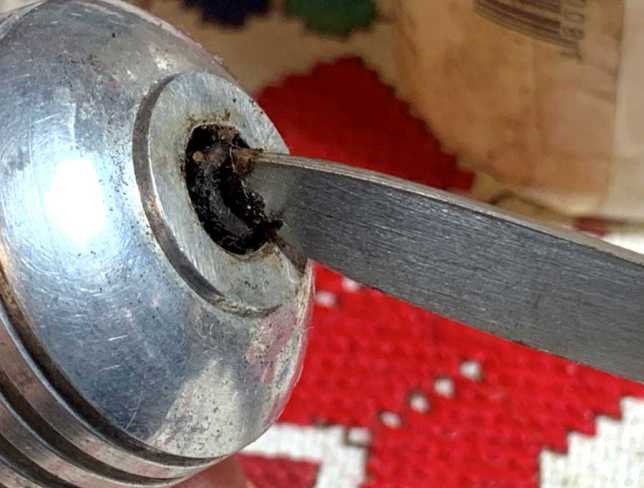 Steel wool is also used as before – twisting it and inserting it in the filter cavity and rotating to clean.