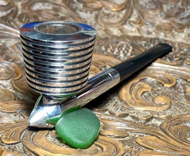 I’m fascinated with the metal pipe genre’ mainly because I’ve never had a metal pipe in my own collection, but whenever I talk with metal pipe enthusiasts, they say essentially the same thing: ‘There’s nothing like it.’ I’ve never used a metal pipe, but I’m always interested in learning more. To learn more about Curtis I looked at both Pipedia and Pipephil and was surprised to find no reference. I next turned to RebornPipes.com and found that Steve had indeed worked on a Curtis which looked very similar to the Curtis on the worktable (https://rebornpipes.com/tag/design-by-curtis-pipes/). I liked Steve’s description of the Curtis he was working on which closely mirrors the pipe on the worktable: