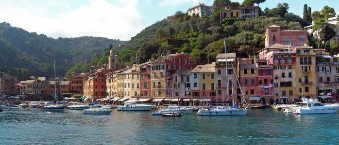 Portofino (Italian pronunciation: [ˌpɔrtoˈfiːno]; Ligurian: Portofin [ˌpɔɾtuˈfiŋ]) is a comune located in the Metropolitan City of Genoa on the Italian Riviera. The town is clustered around its small harbour, and is known for the colourfully painted buildings that line the shore.[3] Since the late 19th century Portofino has attracted tourism of the European aristocracy and it is now a resort for the world’s jet set.[4][5]