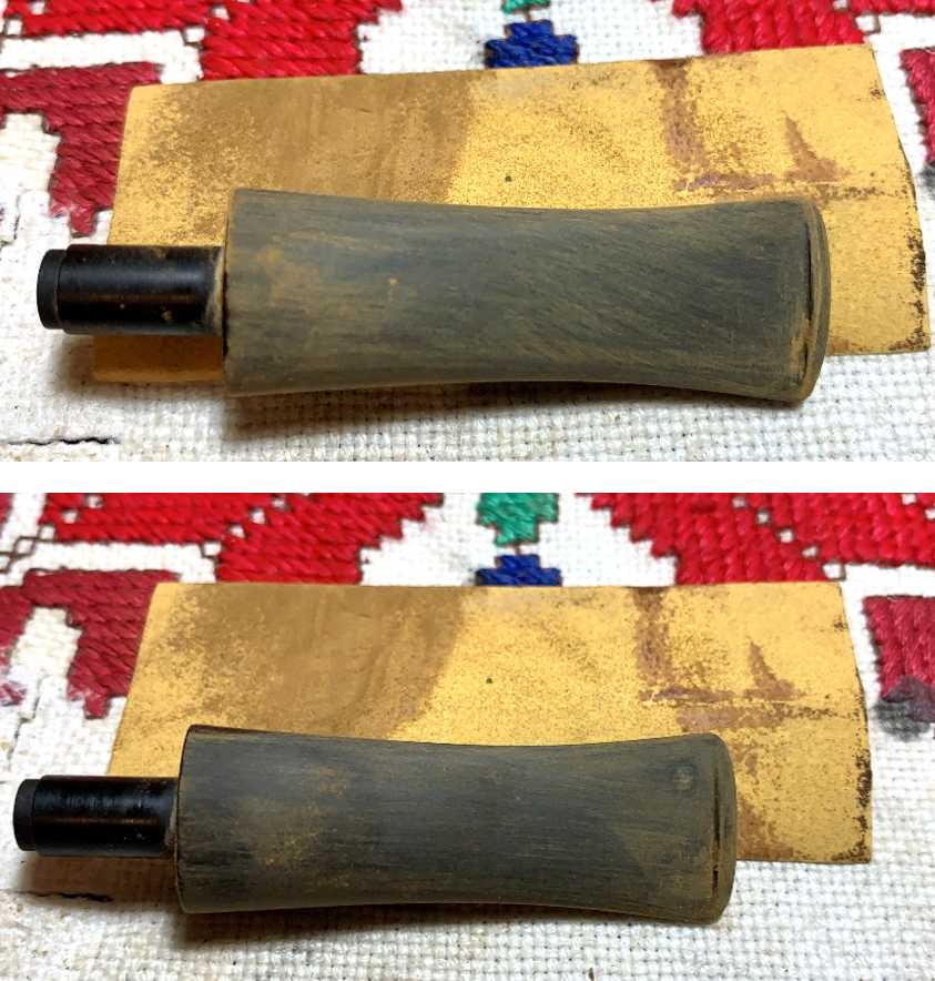 This is then followed by using 0000 steel wool. The stem looks good. Not shown is using a pipe cleaner moistened with isopropyl 99% to clear the airway of Briarville fluid.
