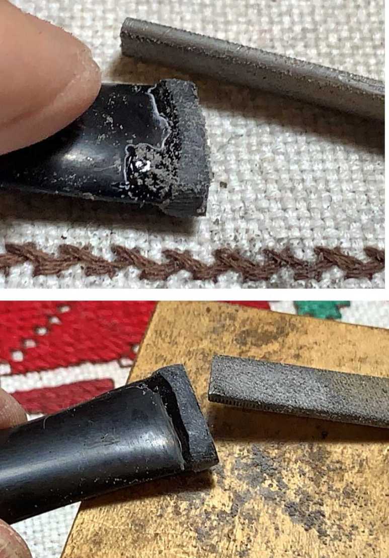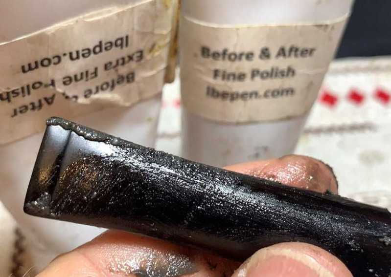 Back to where the detour began – micromesh. The stem is first wet sanded with pads 1500 to 2400. Following this, the stem is dry sanded with pads 3200 to 4000 and 6000 to 12000. Between each set of 3 pads, Obsidian Oil is applied to further condition the stem and to guard against oxidation. Throughout the process, I’m careful to guard against sanding over the ghosting stem logo.