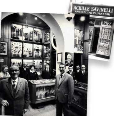 Achille Savinelli Sr. opened in Milano (1876) a store dedicated to smokers. In 1890 his son Carlo Savinelli succeeded him for about 50 years. The grandson of the founder, Achille Savinelli Jr. (1918-1987) in association with Enea Buzzi started pipe production in Brebbia. They split in 1953, Savinelli setting up its own factory in Molina di Barasso.