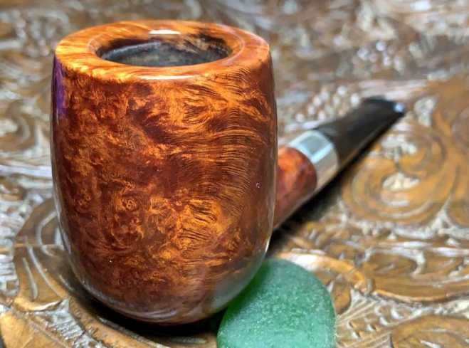 My, oh my. This Savinelli Silver 111 KS presents the image of a Billiard with all the classic lines and a sterling silver band thrown in to match one’s cufflinks. The grain is beautiful with swirls and tight bird’s eye scattered. The size of the Silver is: Length: 5 1/2 inches, Height: 2 inches, Rim width: 1 3/8 inches, Chamber width: 7/8 inches, Chamber depth: 1 3/4 inches, and weighing in at 52g. Gary commissioned this Savinelli Silver Billiard and will have the first opportunity to claim him from the Pipe Steward Store benefiting the Daughters of Bulgaria – helping women and girls who have been trafficked and sexually exploited. Thanks for joining me!