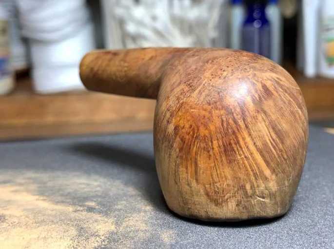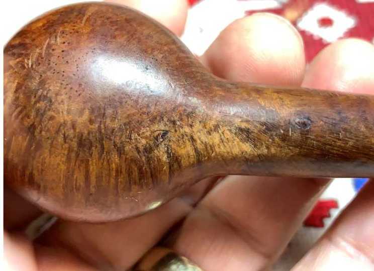 The cleaning did a great job. More good news – only two small fills detected at this point. We’ll see if sanding dispatches them. There are many scratches and a few dents that have accumulated over the years, but the briar shows some promising grain patterns.