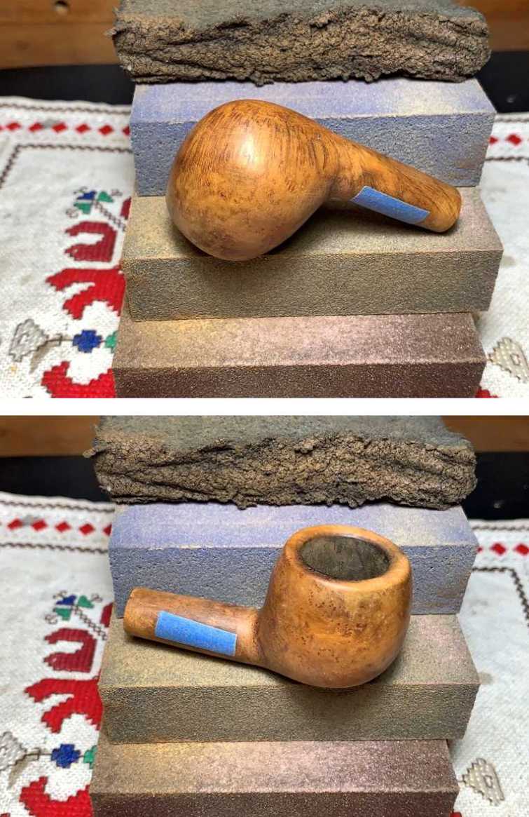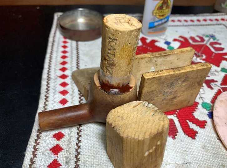 The next morning, after getting other matters and projects out of the way, I’m anxious to see how the briar putty mold worked. With a little twisting and a pull, the cork comes out as hoped with the help of Petroleum Jelly over scotch tape.