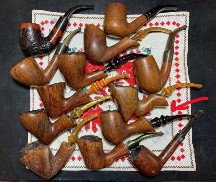 Ron and I came to a mutually beneficial agreement and the Lot of 14 joined another Lot of 6 I acquired from Ron earlier. Here is the Lot when I got them home and spread them out on the worktable. From the worktable, they were placed online in the For “Pipe Dreamers” ONLY! collection for pipe men and women to commission benefiting the Daughters of Bulgaria – helping women and girls who have been trafficked and sexually exploited. Here is the Lakewood Lot of 14.