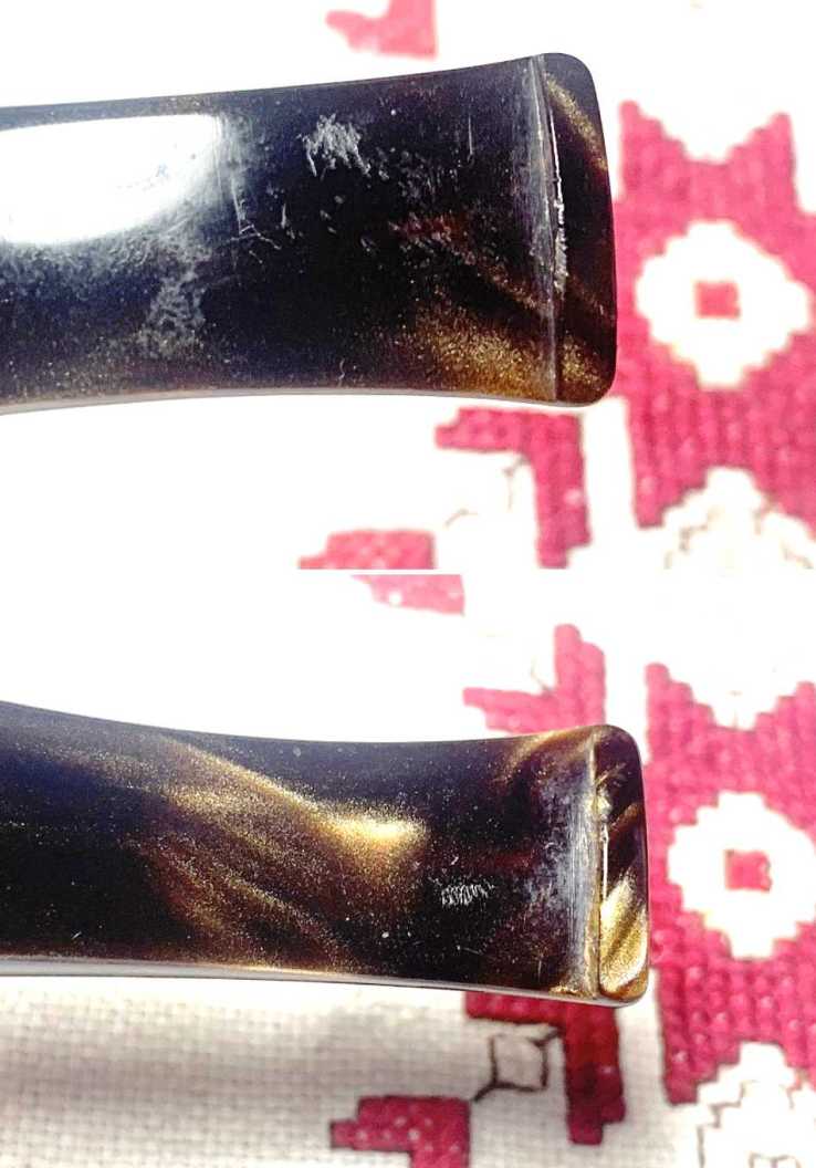 The acrylic stem has scratching and tooth chatter on the upper and lower bit. The picture is lightened to make the issues more visible.
