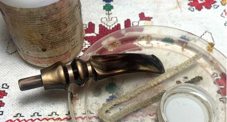 To begin the restoration of this unbranded Freehand, the acrylic stem’s airway is first cleaned with isopropyl 99%. One cleaner was sufficient.