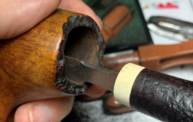 Then, the chamber walls are scraped with the Savinelli Fitsall Tool. It does a good job reaching down to the bottom and navigating the contours of the floor.