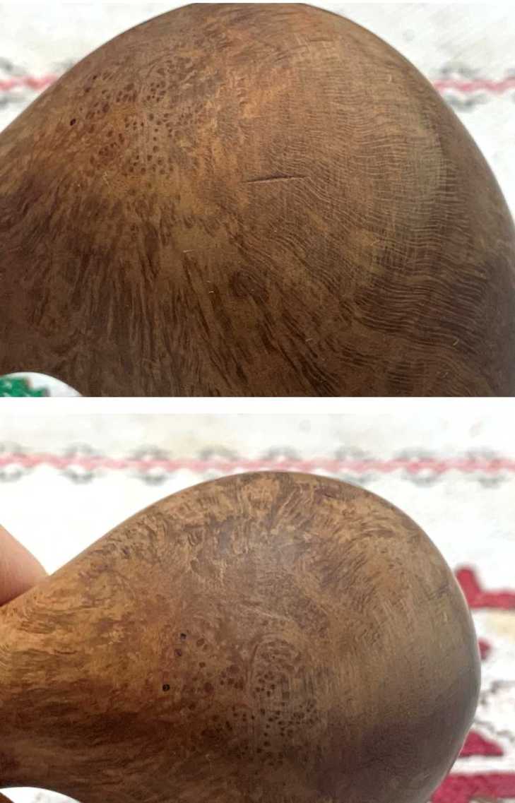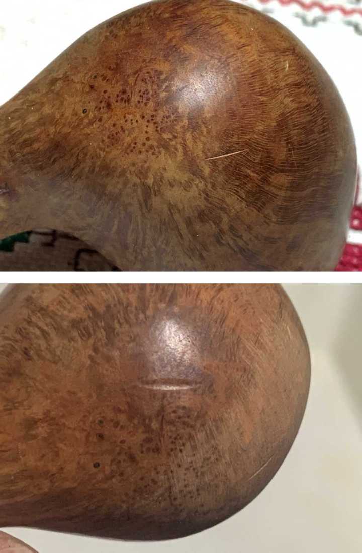 There are two significant cuts or dents on the heel of the stummel. The first picture below shows what looks more like a cut, not a dent. Whereas the second I believe is a dent.