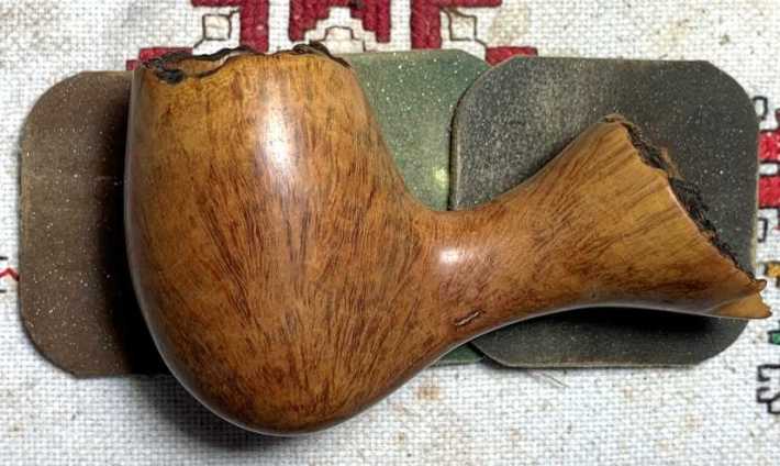 Even though this Freehand is unbranded, it is a beautiful example of this unique style – ‘Follow the grain!’ The decision to apply dye to bring out the grain was a good one. The grain reaches vertically to the plateau and the bowl has a lot of bird’s eye grain which provides a nice display for the eyes. The acrylic stem is subtle and is marbled with browns and golds and compliments well the Freehand stummel. There is little doubt that a goodly portion can be packed into the bowl which has a solid feel in the hand. John commissioned this Freehand and has the first opportunity to claim him in the Pipe Steward Store benefitting the Daughters of Bulgaria – helping women and girls who have been trafficked and sexually exploited. We start with a ‘before’ picture to remember how far we’ve come. Thanks for joining me!
