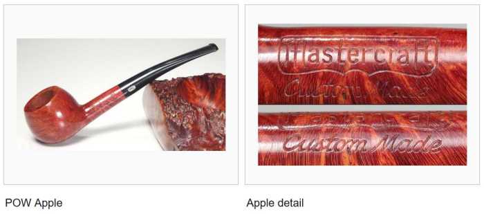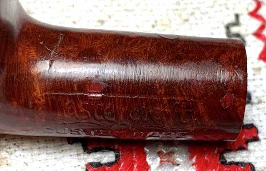 Pipedia’s Mastercraft article has several examples of MC pipes (courtesy of Doug Valitchka). The very first example caught my eye because it appears to be identical to the pipe on the worktable. The example (pictured below) is labeled as an Apple shape. One could see it as an Apple, but I would call it a Prince all day long. The stampings on the left shank side are identical with ‘Mastercraft’ and Custom Made – except the Custom Made below is in cursive, ours in block lettering.